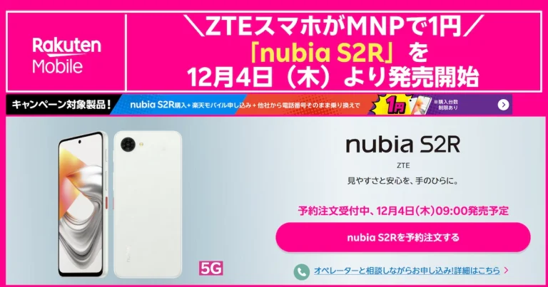 楽天モバイルから、国内携帯キャリアでは唯一となるZTE製スマートフォン「nubia S2R(ヌビア エスツーアール)」が登場しました。2025年12月2日(火)14時から予約受付開始、12月4日(木)9時から発売予定です。 見やすい約6.7インチ大画 […]