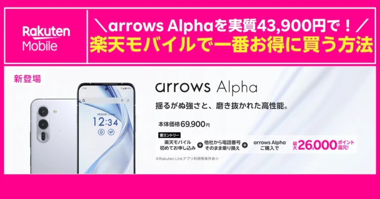 arrows Alphaを実質43,900円で!楽天モバイルのキャンペーンで一番お得に買う方法