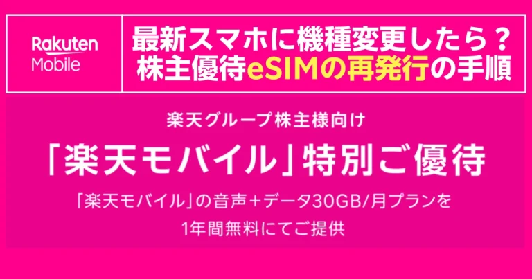 新スマホのために株主優待eSIMを再発行したい! 楽天グループ株主優待の楽天モバイルSIM(eSIM/pSIM)は、通常の楽天モバイル契約と手順が異なります。 再発行は「株主様ご優待サイト」のSIM再発行フォームから申請し、届いた書(eSIMのQRな […]