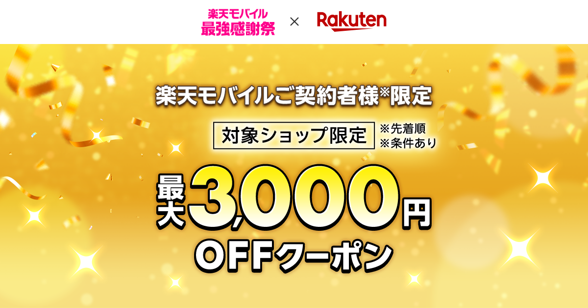 ![楽天モバイル契約者向け 楽天市場の特別クーポン 3,000円OFF[先着順]](https://jp.rmobileouen.net/wp-content/uploads/2025/08/rakuten-market-3000off-coupon.webp)