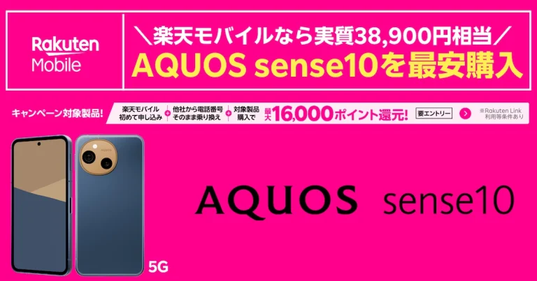 AQUOS sense10は楽天モバイルなら実質38,900円相当に!二重取りの方法を解説します
